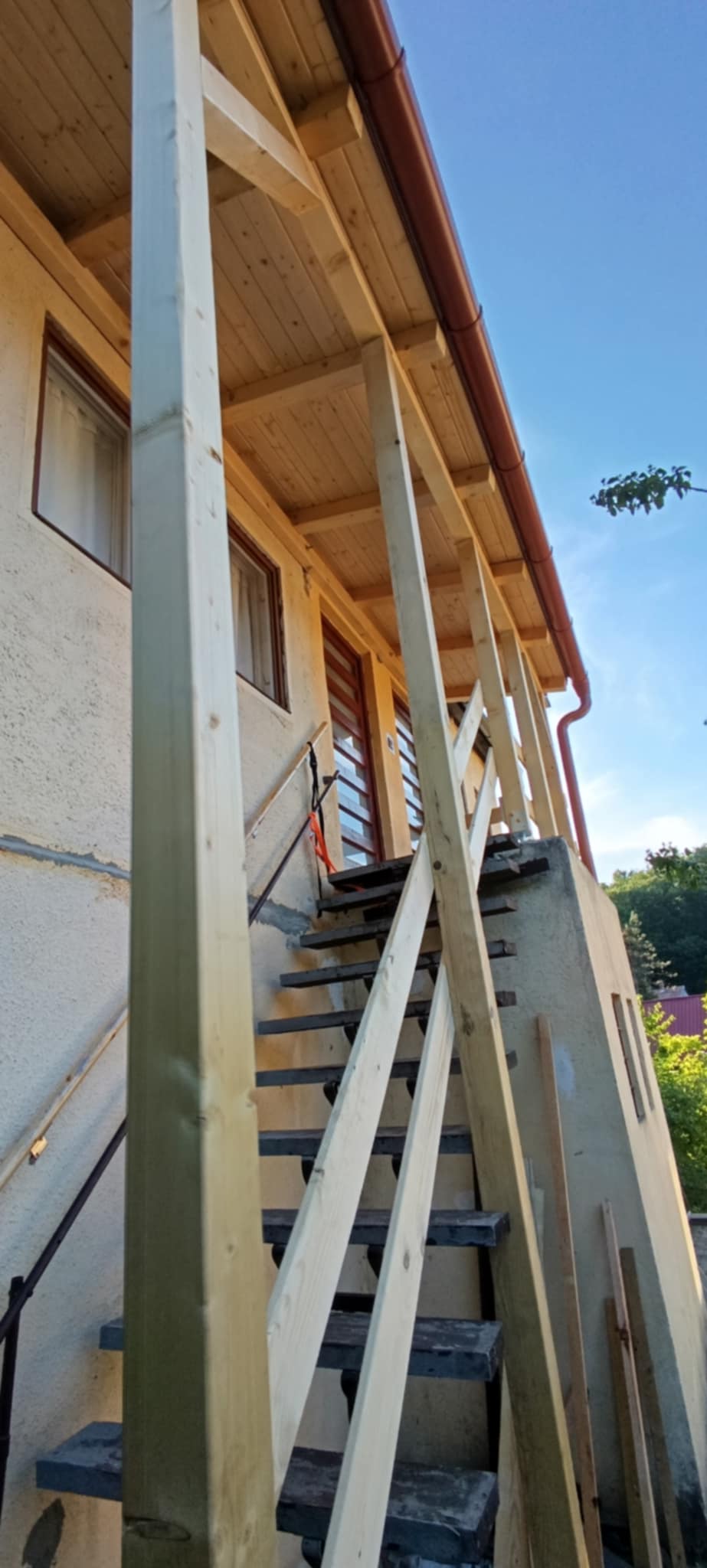 Götz Gábor, új tetőszerkezet építése kezelt faanyagból Zebegényben