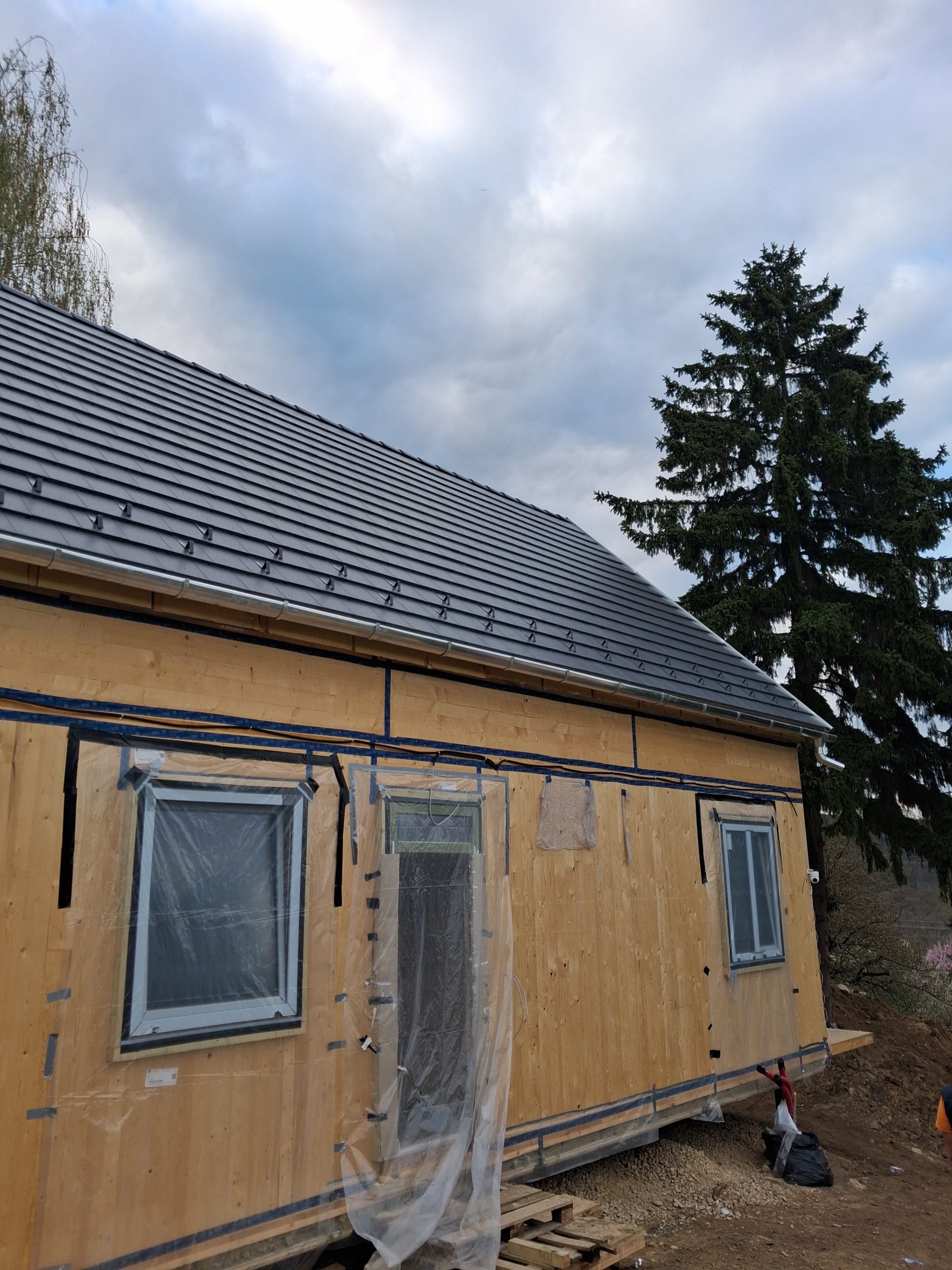 Götz Gábor, előtető építés, csatornaszerelés festett antracit elemekből Vácott